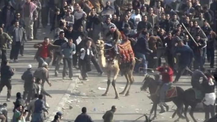 هجوم بالجمال والاحصنة من جانب مؤيدين لنظام مبارك على اعتصام التحرير في ٢ فبراير ٢٠١١