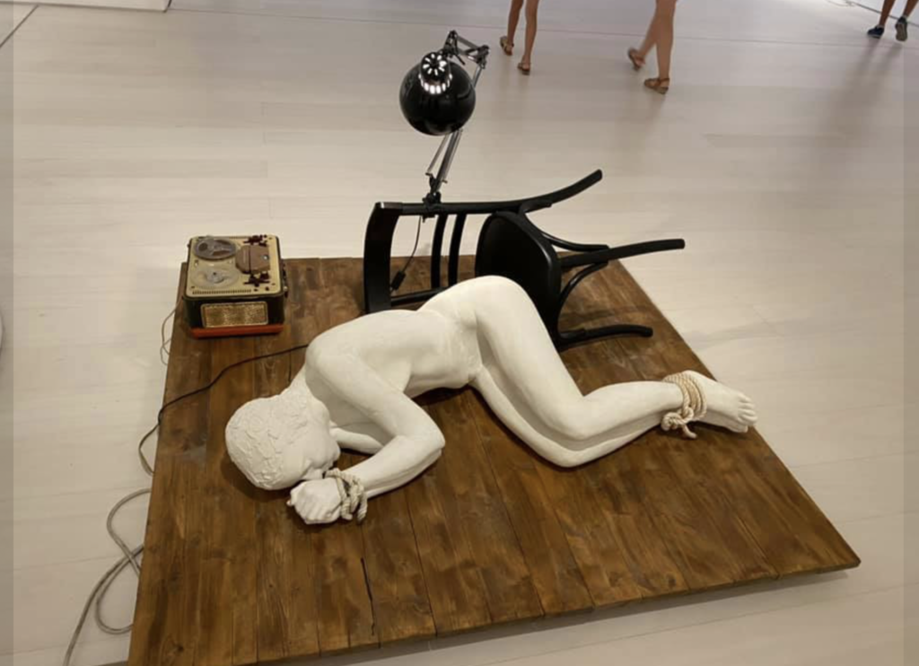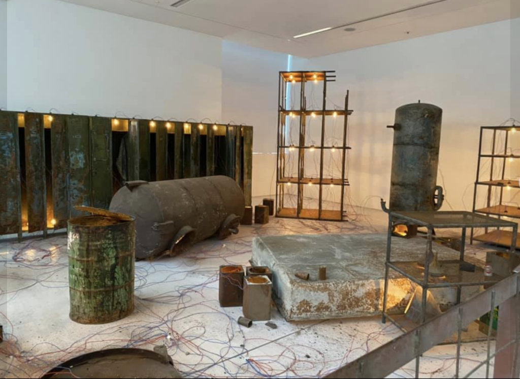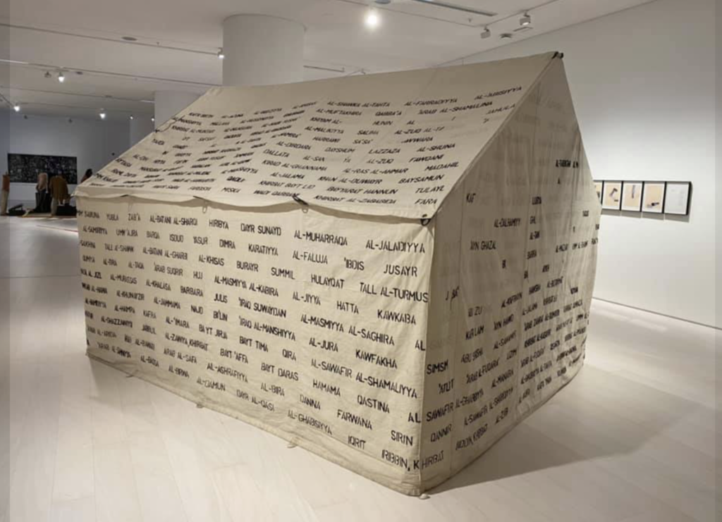 ٢٢ أغسطس — منى حاطوم (بقايا مصنع) وايميلي جاسر (خيمة باسماء ٤١٨ قرية فلسطينية دمُرت في نكبة ١٩٤٨) وديميتريس اليثينوس (التعذيب) في متحف الفن المعاصر في اثينا