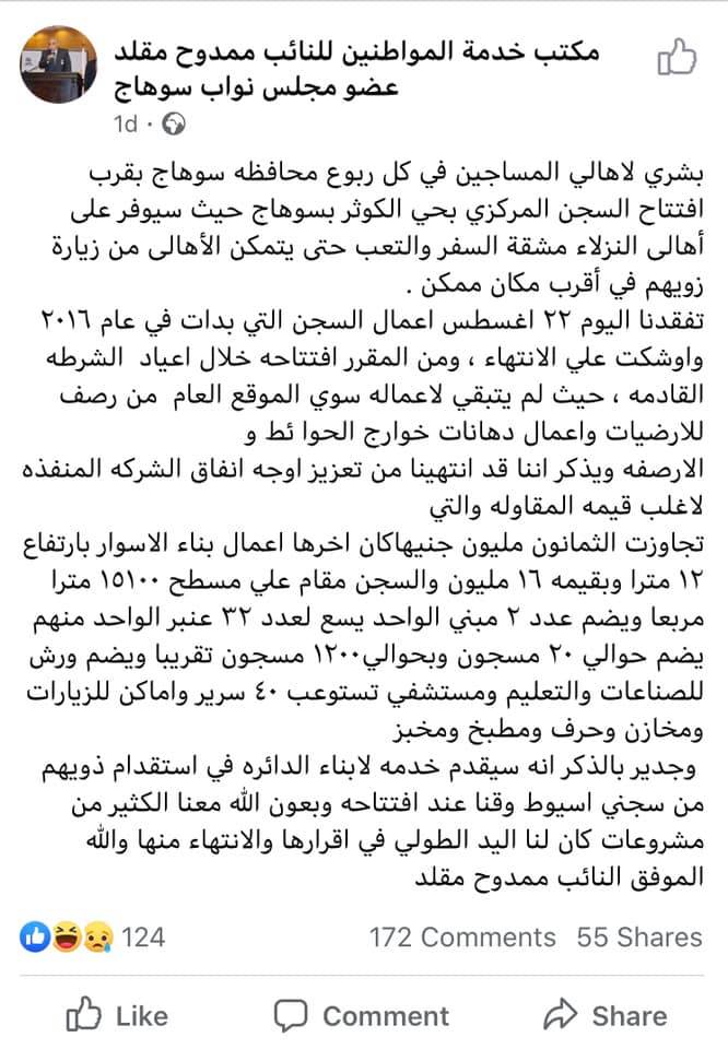 ٢٤ اغسطس — الانتخابات البرلمانية في مصر خلال شهور والطامعين بأول حملاتهم المبتكرة ومنهم نائب حالي يبشر اهالي الدائرة بافتتاح سجن جديد وعلى احدث طراز وسط منطقتهم سيوفر عليهم السفر لمحافظات اخرى لرؤية ذويهم المعتقلين ويمنحهم فرصة الحبس قريبا من الاسرة. وكمان السجن وفر عقود بالملايين والنائب الحالي ساهم في توفير الاعتمادات. يلخص الرجل بدعايته وصوره امام مبنى السجن الجديد في سوهاج بصعيد مصر حال البلاد والمواطنين (اقصد الرعايا) واهو من ناحية سجن ومن ناحية منفعة، وعلى ضهرها تنور وعلى بطنها تنور. ولا نقلل، للمأساة والاسف، من اهمية ان يكون السجن في مصر قريبا من عائلات المساجين حيث سيوفر عليهم الاف الجنيهات مصاريف انتقال وعشرات الساعات من السفر والوقت الضائع، ولكن كم سجنا اضطرت حكومة مصر ان تبني منذ ثورة يناير وبكم واين ولمن ولماذا؟ يمكن للسيد النائب ان يسأل في البرلمان ولكني اشك ان يفعل مثلما اشك ان هناك برلمانا يمثل الناس.