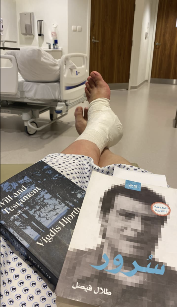 احيانا تساعدنا الفلسفة والتحليل النفسي في التعامل مع الألم، طبعا بعد المسكنات المتدفقة عبر خرطوم المحاليل الى الوريد. ولكن تعليقاتها جعلتني افكر الان في كتابة نص طويل اسميه “أنا … وتلك الساق اليسرى”، ربما يكون بداية المصالحة كي تتركني هذه الساق، ساقي، في سلام، ما تبقى لي من العمر.