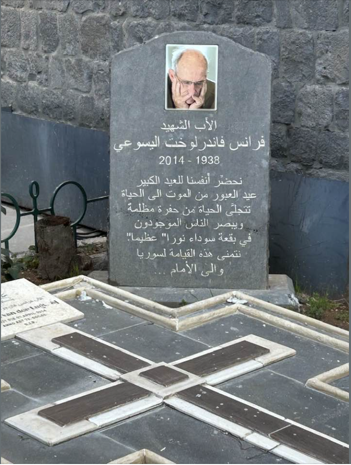 ٢٢ فبراير ٢٠٢٥ — اقترب الملثم من الأب فرانس في الحديقة التي اعتاد تناول قهوة الصباح فيها، وربما رأت عينا أبونا ساعتها الشجيرات التي ستنمو في المستقبل بجوار النافورة في ذلك المكان الهادىء من دير اليسوعيين في قلب حمص القديمة، وصوّل الجبان مسدسه تجاه رأس الراهب اليسوعي الذي اخفى عائلة مسلمة في قبو الدير فانقذها من الموت، ضغط اصبع القاتل على الزناد، وصرنا الآن نبصر في نفس المكان الذي سقط فيه الشهيد، ثم دُفن، نورا عظيما.
