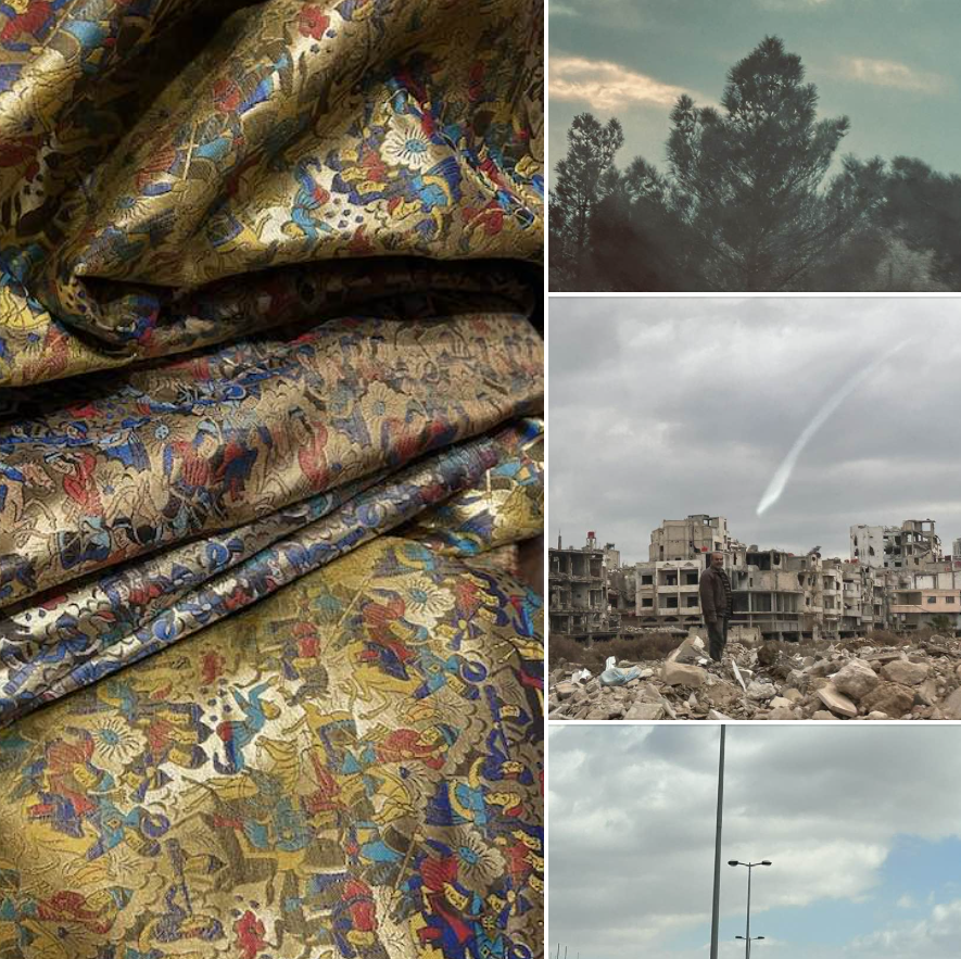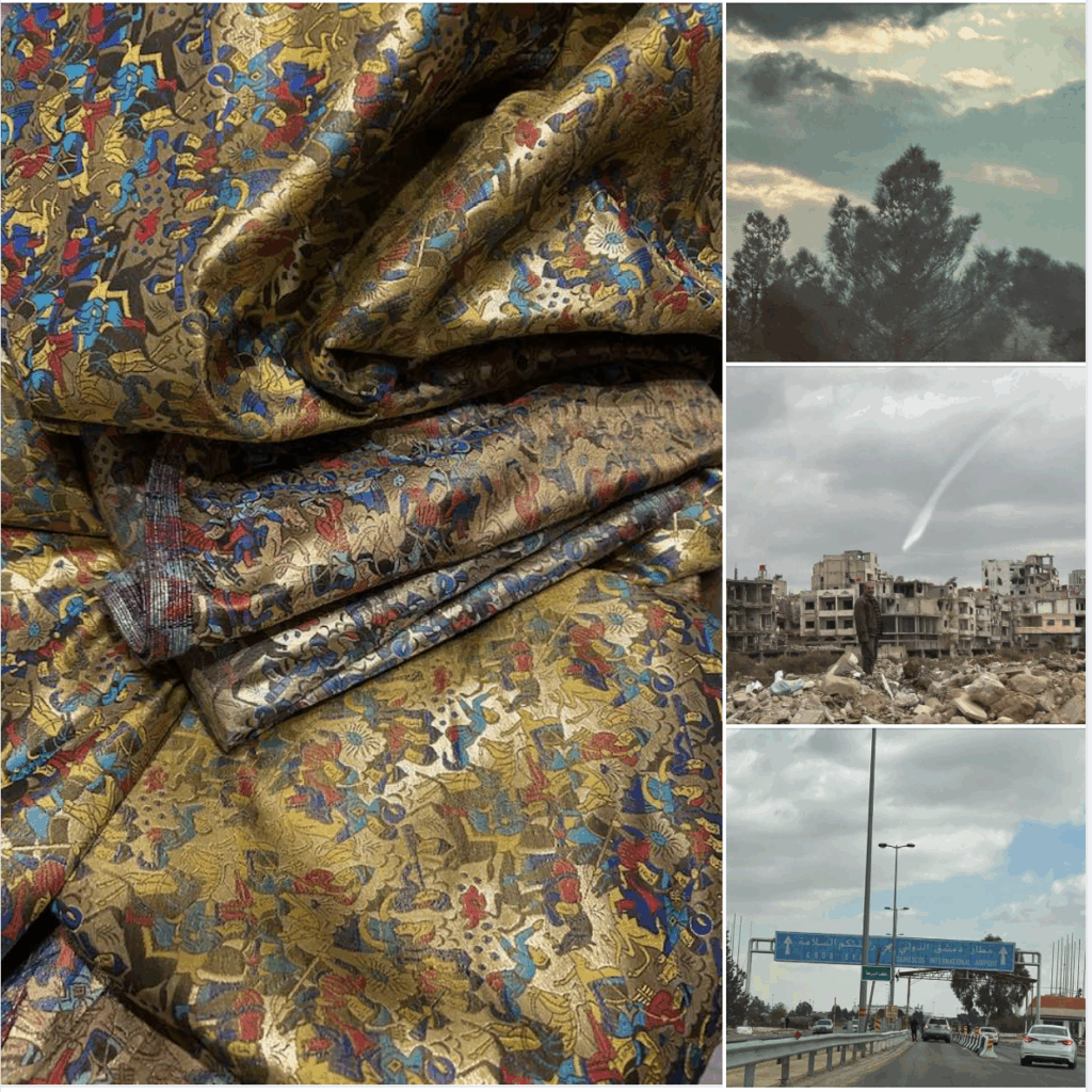لا شىء يلخص سوريا (أو أي بلد بالضرورة) لكن الحرير الدمشقي (نقش صلاح الدين في الصورة المرفقة) لخص لي الوضع بعمقه وتنوعه والوانه وتداخلاته وكون النقش هذا تحديدا يقدم معركة حامية وقتلا وقتلى ويستدعي ذكريات تختلط معها المشاعر بين فخر وغضب وحزن وبهجة وجلال وجمال، تجلبها جميعا وتزاوج بينها تلك الدراما المشهدية والألوان الباذخة. أمل وافر وقلق عميق وكلاهما له اسباب كثيرة في الواقع، وفي هذا النسيج الذي يمكن ان تنسل خيوطه بسهولة ويمكن ان تظل متماسكة ومتعاونة مئات السنين.