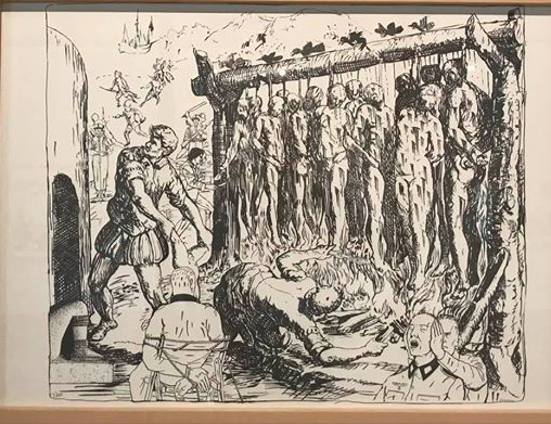 ١٥ نوفمبر – Note the sensitive soldier agony because of the daily BBQ party — from Demian Flores work on the conquest of the americas @francisco Toledo centre near Oaxaca. انظر إلى معاناة الجندي رقيق الحس والمشاعر بسب حفلة الشواء البشري اليومية. من اعمال دميان فلوريس عن الامريكتيين في مركز فرانشيسكو توليدو بالقرب من مدينة واخاكا جنوب المكسيك.