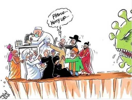 ١٨ مارس – ينصر دينك يا استاذ اسامة، رسمة هايلة! بس خللي الاستاذ العالم يخلص ابحاثه ويطلع الدوا بعد ما الفيروس يخلص على قساوسة التلفزيون وشيوخ المنصر وكل رجال الدين الذين على نوعهم، ويحرم الشركات اللي مشغلة الاستاذ العالم من فشخنا باسعار صاروخية بحجة نفقات البحث والتطوير خصوصا وان كلنا اتفشخنا اقتصاديا (من لديه مدخرات ومن صار لديه ديون