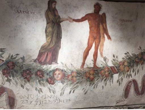 شوية شجاعة وعقل حاجة كويسة وما حدش خالد فيها، وشكرا للمتحف الوطني اللبناني والنحات الروماني والراجل الغني اللي بنى المقبرة دي للشاب الفقيد جنب مدينة صور. (تحديث: وجدت الصورة واضفتها وفيها يلتقي هرقل مع الشاب السيتيس في عالم الاموات والجملة المقصودة اسفل يسار الصورة وربما باليونانية وليس اللاتينية ويفيدنا المتخصصون!)