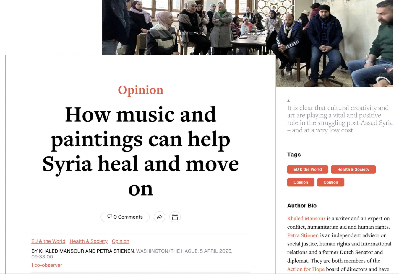 By investing in culture and creative expression, the international community can enable Syrians to rebuild trust, work on social cohesion, and restore a shared national identity after decades of dictatorship and conflict.